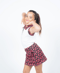 - White Bodice and Camellia Print Collar and Trim