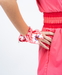 - Rose Pink Dress with Red, Rose Pink & Petal Pink Waistband.