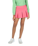 - Pleated skort flares at the hips.