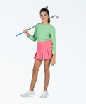 We don't mean to lovebomb the entire "She Lives on Love Street" collection...but we're kind of obsessed! If we may be so bold, the Love Street Skort is the best-fitting skort ever! Stretch tricot fabric lays sleekly over the waist and upper hip area before it flares into hidden full pleats. Any way you slice it (or your ball), this skirt is a certified #smilezone winner.