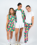 - Queen Floral Print Dress with stiped waistband and Lucky Green Trims.
