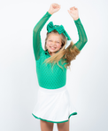 - Geometric Floral Bodice with Half Lucky Green Mesh Sleeves