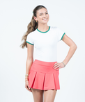 We don't mean to lovebomb the entire "She Lives on Love Street" collection...but we're kind of obsessed! If we may be so bold, the Love Street Skort is the best-fitting skort ever! Stretch tricot fabric lays sleekly over the waist and upper hip area before it flares into hidden full pleats. Any way you slice it (or your ball), this skirt is a certified #smilezone winner.