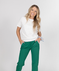 Shine in the Golden Tee! This stylish and comfy tee hits at the hip with a sleek round neck. Perfect on its own or paired with the Golden Pullover or Skort for a complete look that keeps you glowing all day long!