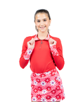 - Red Bodice, Pink Flowerchild check Print Collar and Diagonal Cuffs.
